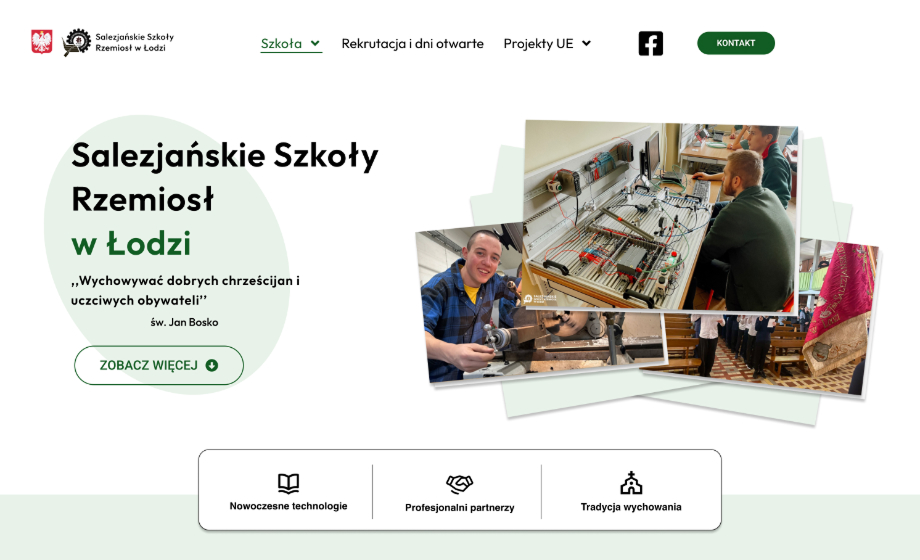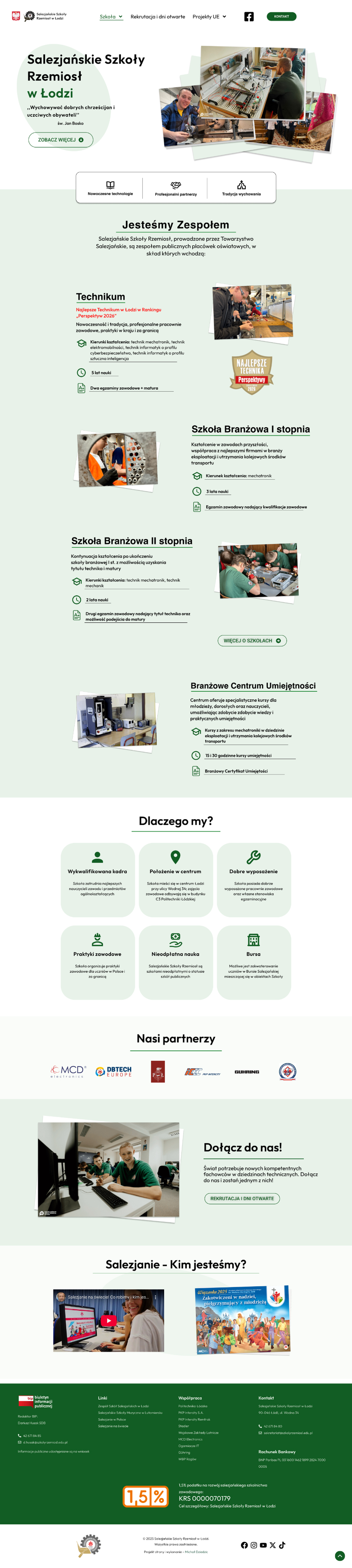 Strona szkoły z ofertą edukacyjną i rekrutacją, zaprojektowana tak, by szybko prowadzić uczniów i rodziców do kluczowych informacji oraz kontaktu.